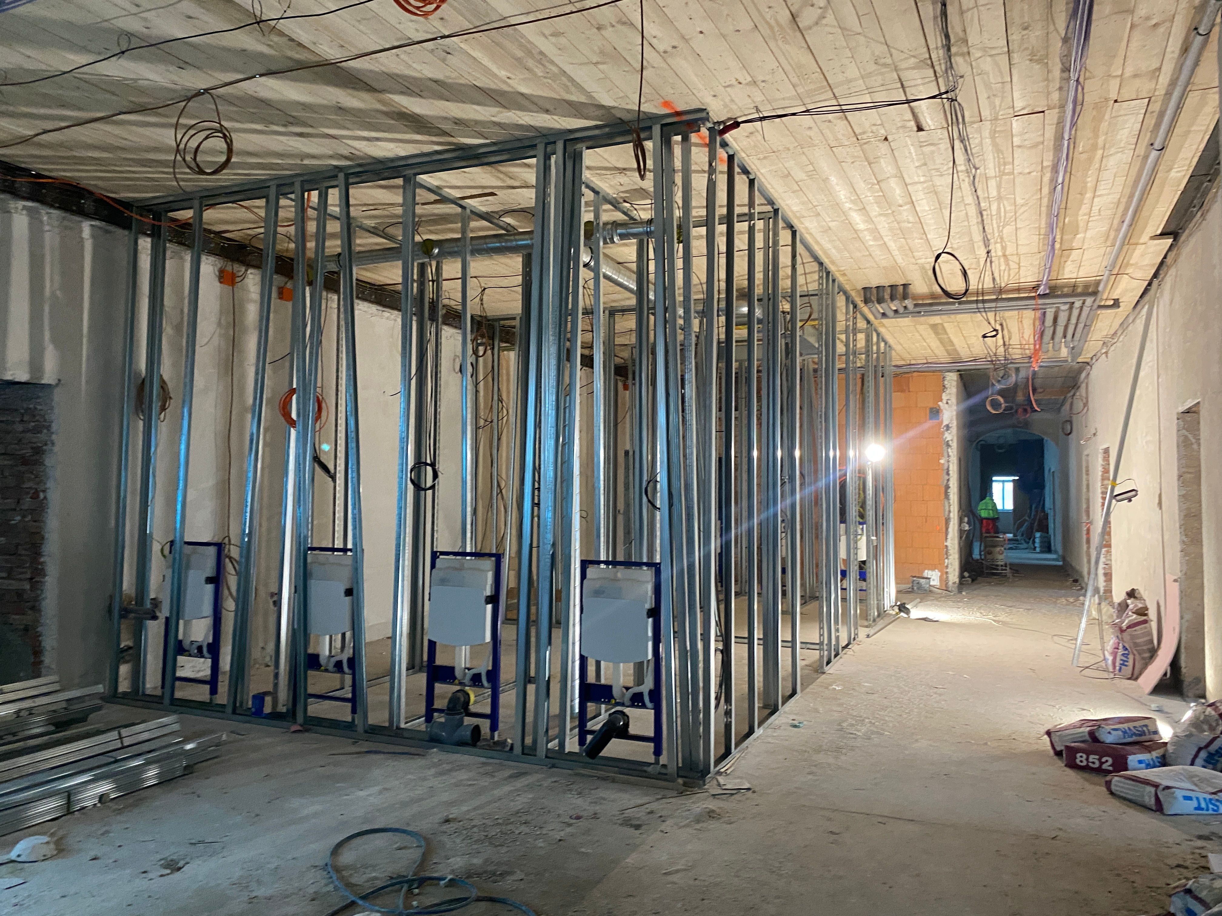 „Je vždy příjemné sledovat, jak se stavba mění v čím dál čistší a obyvatelnější prostor. To druhé ale kvůli mrazům musíte nadále brát s rezervou. Systém vytápění teprve konstruujeme, takže uvnitř topíme externími přímotopy, a to nejen kvůli tomu, abychom nenastydli, ale i z technologických důvodů. Nyní nastává klíčová chvíle pro investora. Připravujeme pro něj vzorovou místnost s cementovou dlažbou a zároveň společně vybíráme dveře, vrata a další interiérové prvky. Co se týče exteriérů, nezbývá nám, než se těšit na jaro, kdy budeme moct pokračovat s úpravou dvorů, gastrodomku a venkovními omítkami,“ prozradil Aleš Kunca, vedoucí projektu z Metrostavu CZ.